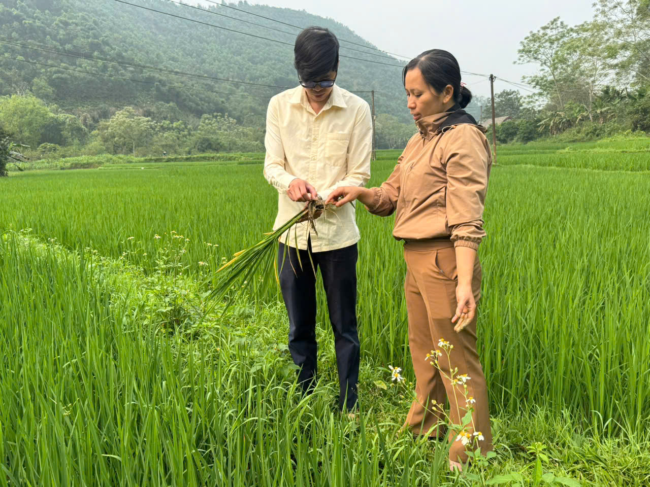 Trạm bảo vệ và kiểm dịch thực vật khu vực V kiểm tra tình hình sinh trưởng và sâu bệnh hại lúa vụ xuân tại xã Vĩnh Tuy