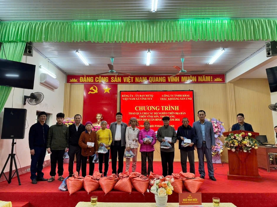 Công ty THHH Thương mại tổng hợp Duyên Phi trao quà tết nguyên đán 2026 cho hộ cận nghèo và đối tượng BTXH xã Vĩnh Tuy