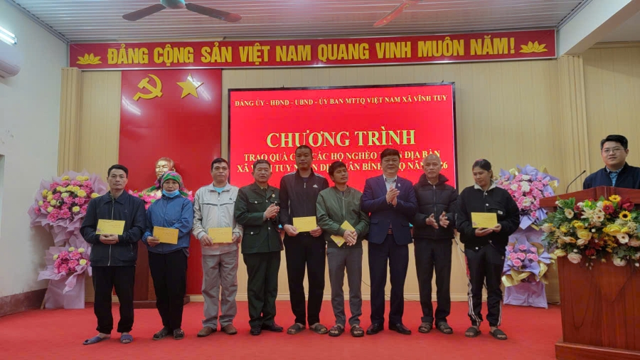 Đảng ủy – UBND xã Vĩnh Tuy tổ chức trao tặng quà tết cho các gia đình có hoàn cảnh khó khăn