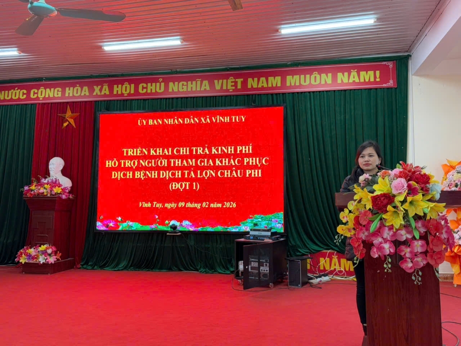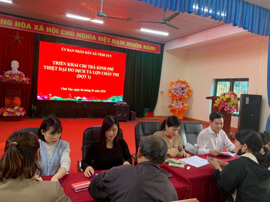 Xã Vĩnh Tuy hoàn thành chi trả kinh phí hỗ trợ người tham gia khắc phục dịch tả lợn Châu Phi