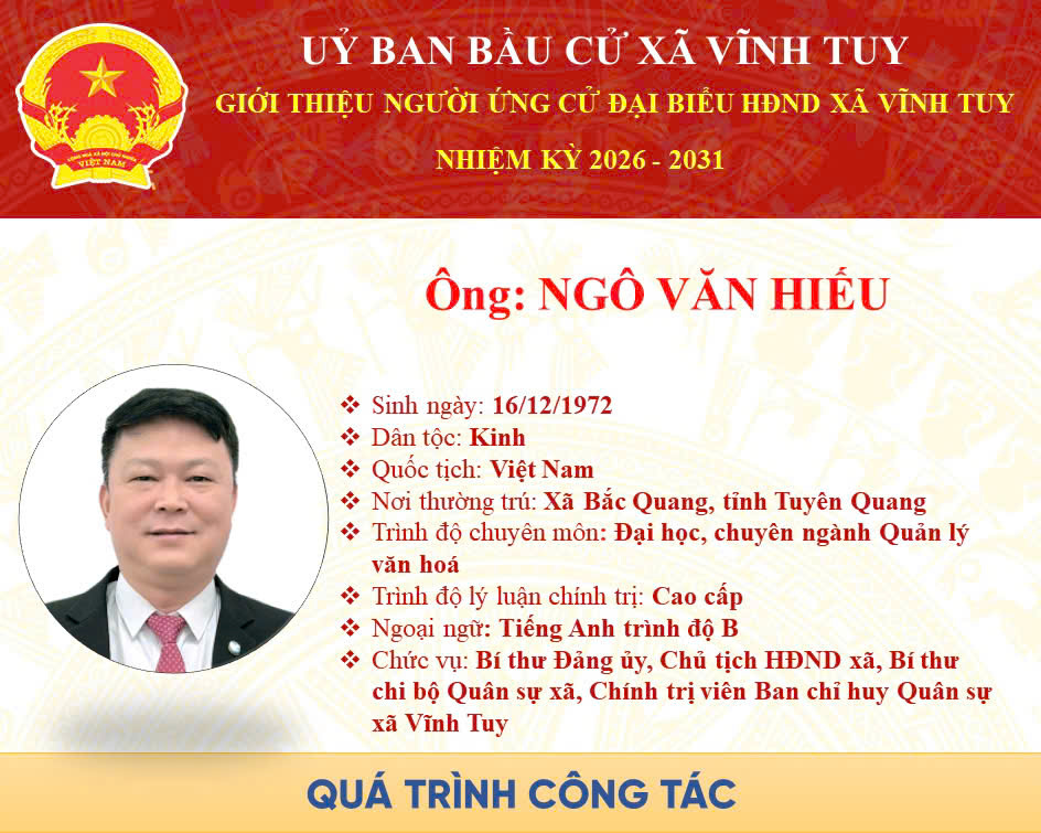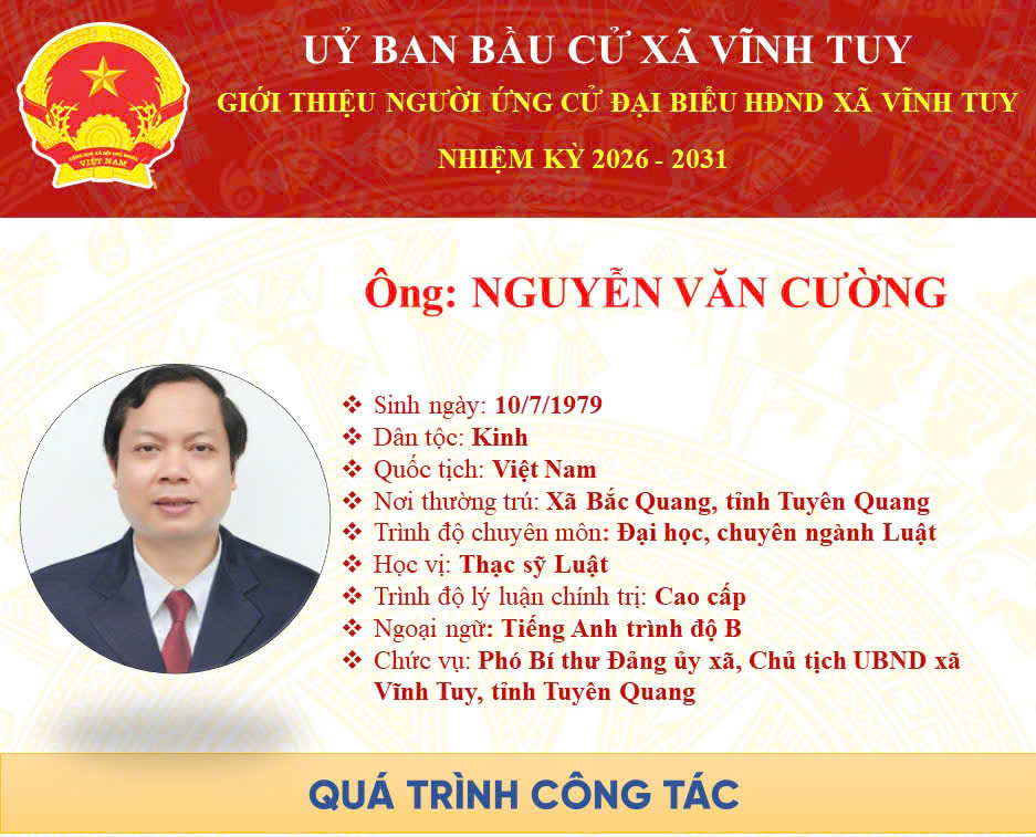 Ghi rõ nguồn 'Trang TTĐT xã Vĩnh Tuy' hoặc 'vinhtuy.tuyenquang.gov.vn' khi phát hành lại thông tin từ các nguồn này.